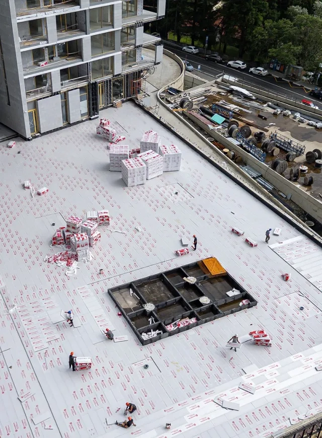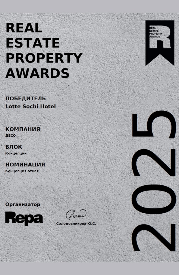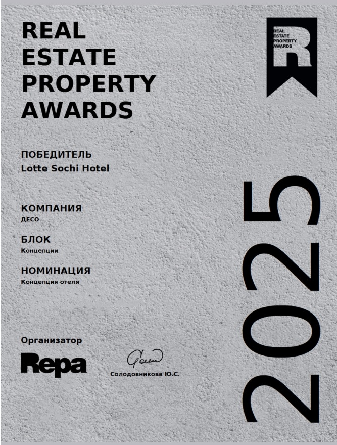 Интерьер отеля оформлен в гармонии с пейзажем хвойного леса и гор, используя строгое дерево, мрамор и матовую фактурную штукатурку. Природные материалы в сочетании с акцентным освещением, комфортабельными лаундж-зонами и выразительными лобби и баром создают атмосферу премиальности и уюта горного отеля.