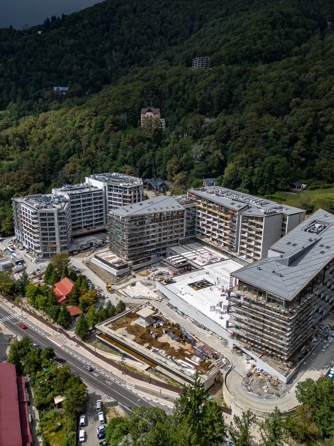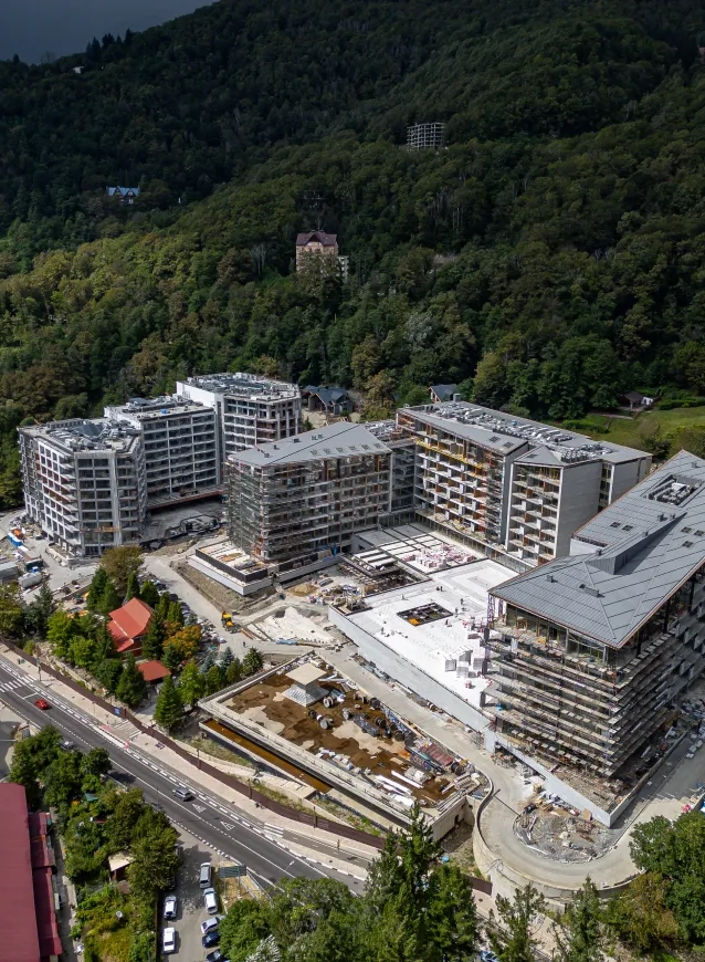 Поселок Красная Поляна — это уютный уголок европейского стиля, напоминающий альпийские курорты с зелеными улицами, горными шале, кафе, лавками и фермерскими магазинами. Всего в 5 минутах на автомобиле находится горный курорт Эсто-Садок, где предлагаются премиальные 5* отeli, горнолыжные комплексы, казино и разнообразные рестораны и кафе.